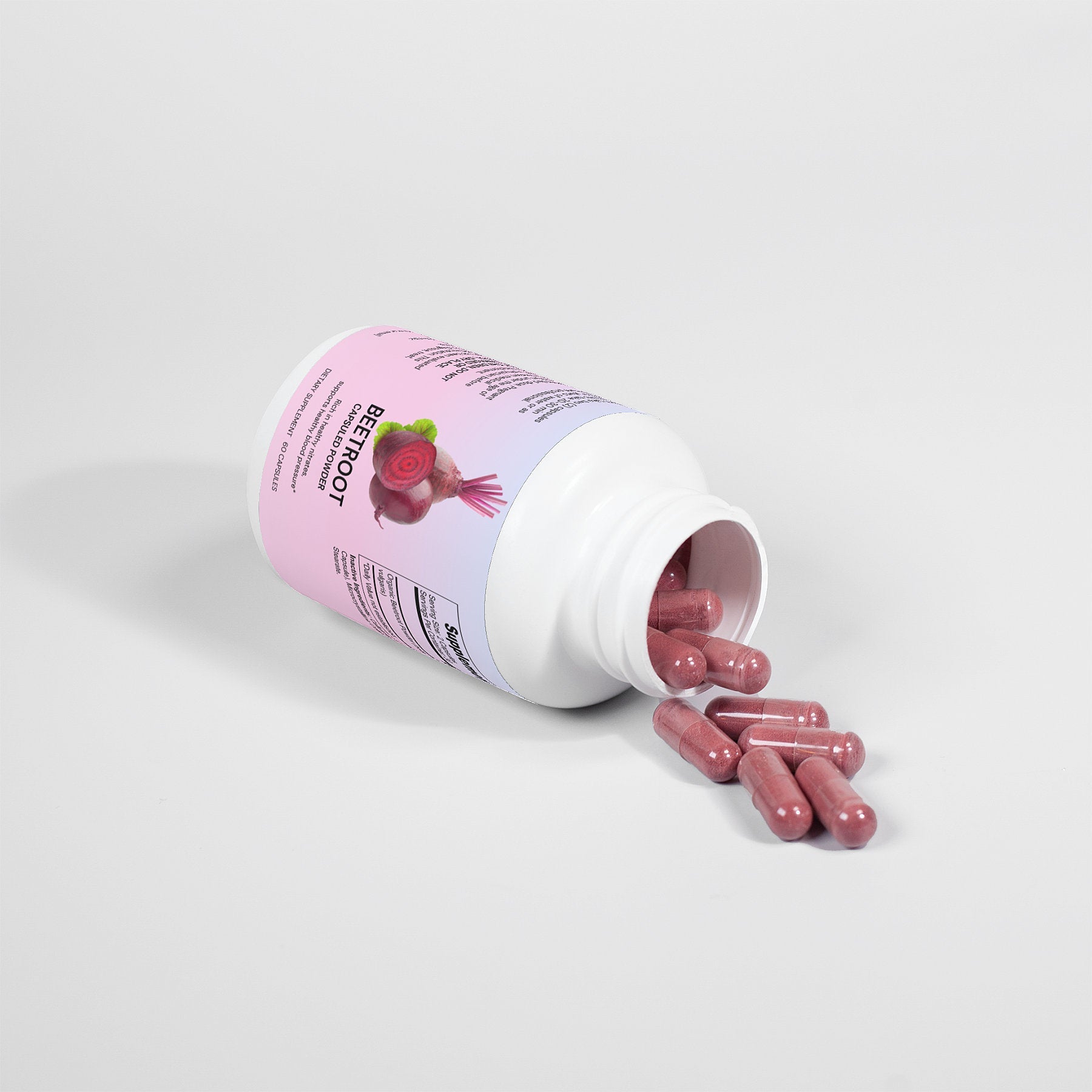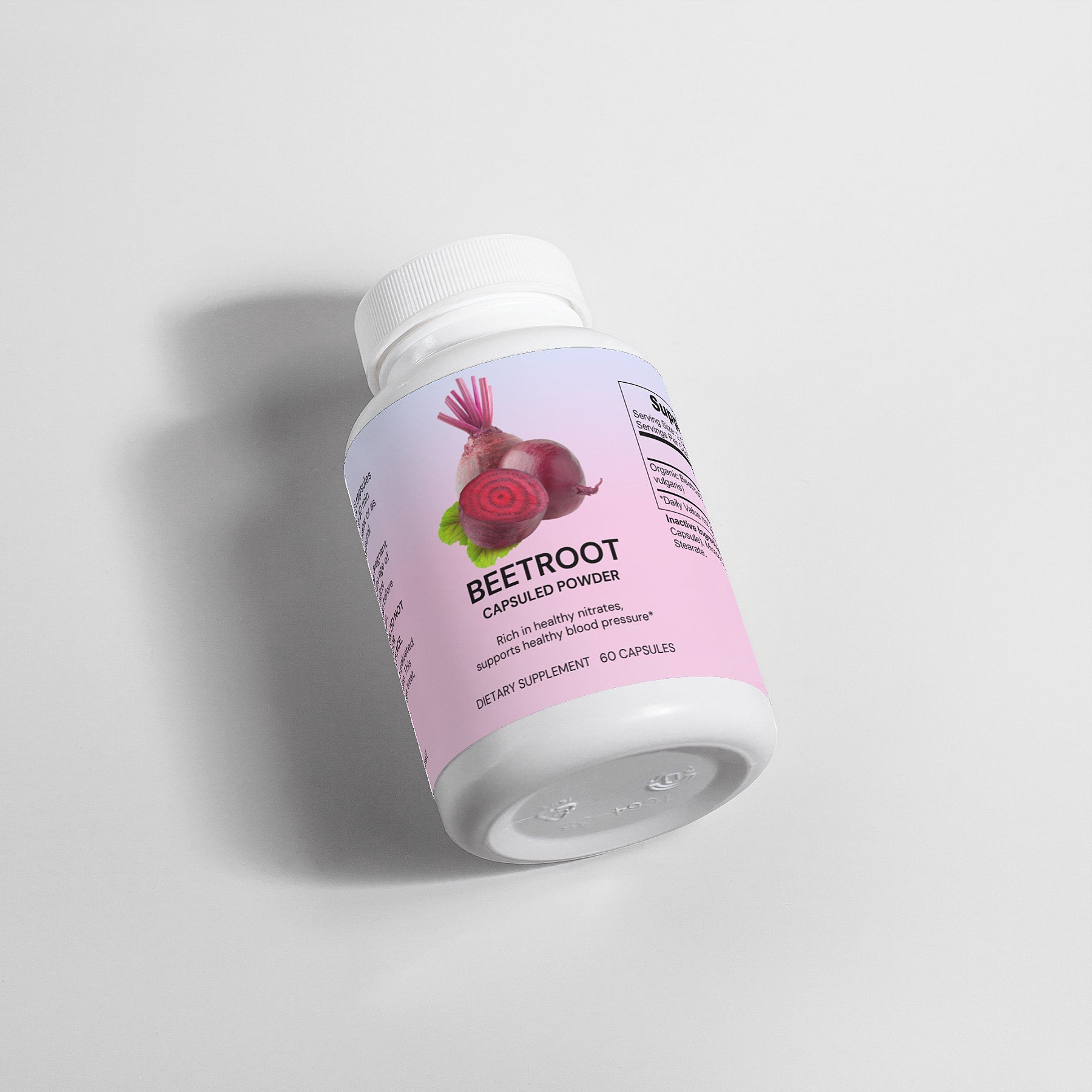 Ingredients: Organic Beetroot Powder (beta vulgaris), Cellulose (Vegetable Capsule), Microcrystalline Cellulose, Magnesium Stearate.