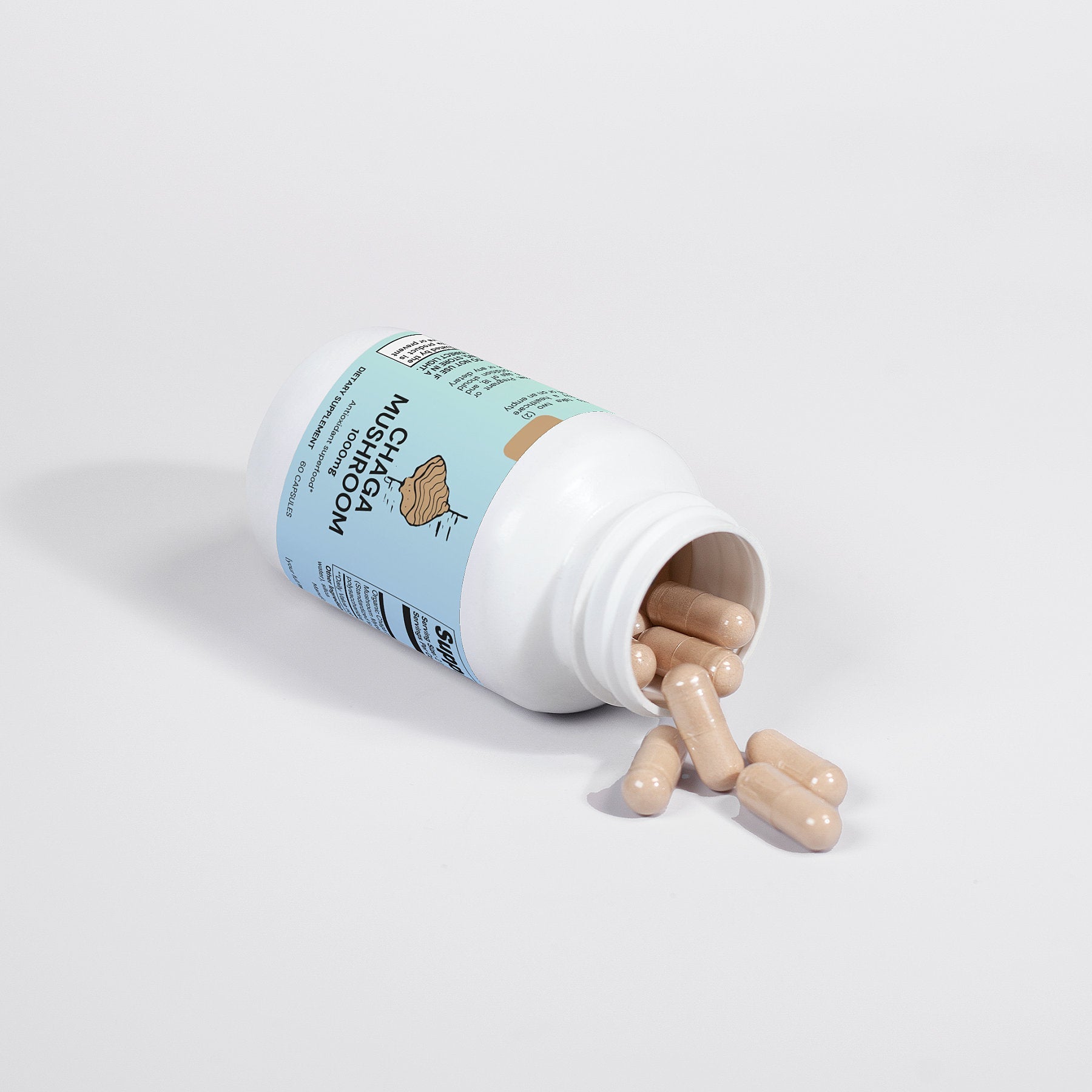 Ingredients: Organic Chaga (Inonotus obliquus) Mushroom Mycelium Powder (Standardized to 40% polysaccharides [400mg]), vegan capsule (modified cellulose, water), silica.