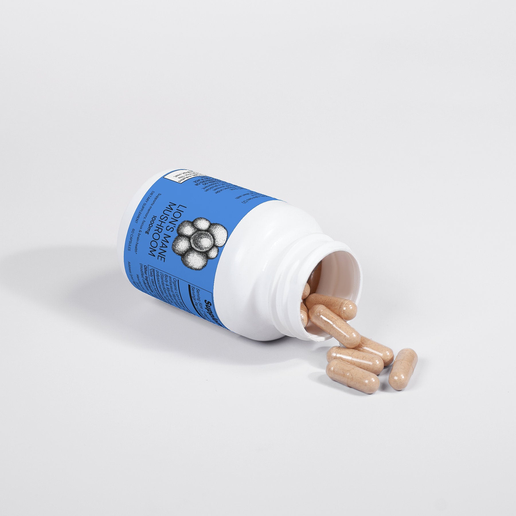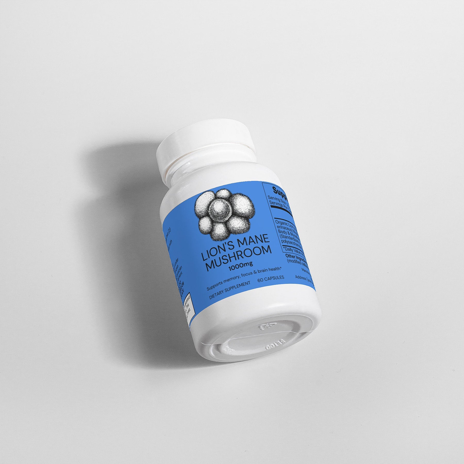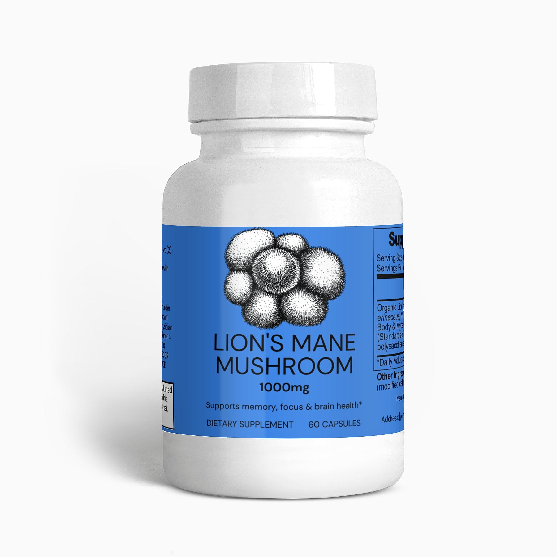 Ingredients: Organic Lion’s Mane (Hericum erinaceus) Mushroom Fruiting Body & Mycelium Powder (Standardized to 40% polysaccharides [400mg]), Vegan Capsule (modified cellulose, water).